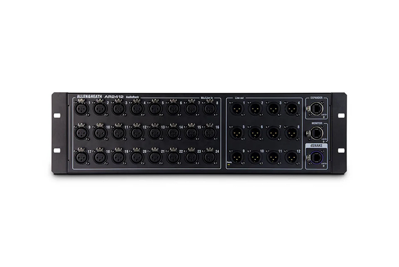 AR2412 is a 48kHz, 24 XLR input, 12 XLR output AudioRack, compatible with Qu, Avantis and SQ mixers, and with the AHM-64 audio matrix processor.